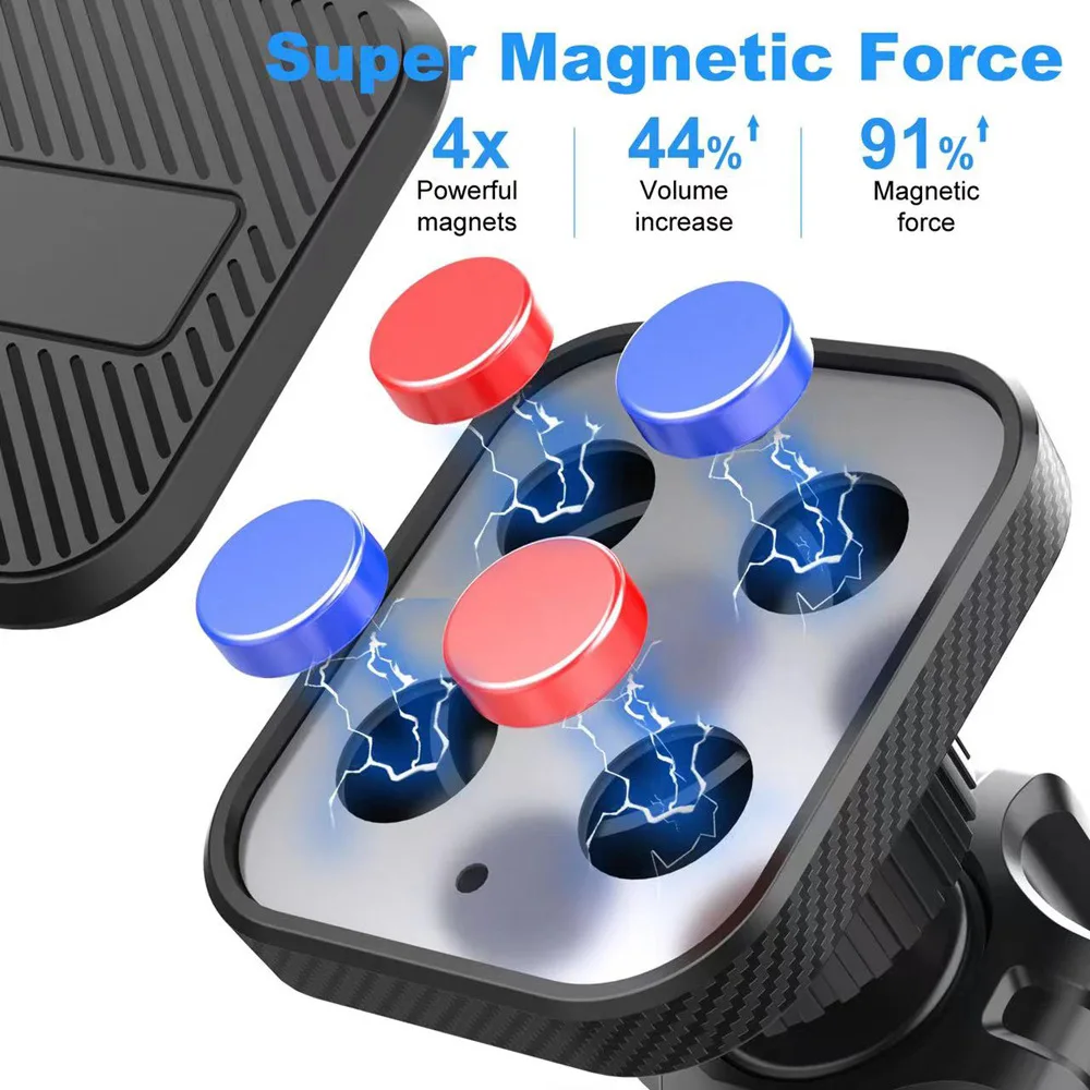 This magnetic car phone mount with 4pcs strong magnets inside, provides super strong suction power. The closed magnet field won’t impact your phone signal at all.