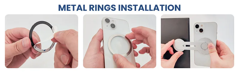 (NOTE: If your phone has thick case or you use others phones, please stick the metal ring on the back of your phone or case.)