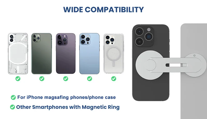 Compatible for iPhone 15/14/13/12 Pro Max Mini & official Mag Safe cases & other magnet cases.
